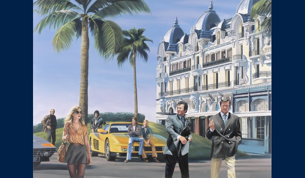 Cette fresque de 6 mètres de long met en scène (principalement) les stars des série télévisées des années 70 et 80. Les voitures que l'on peut voir sont celles du propriétaire du tableau. Il s'agit d'un travail de commande pour lequel j'ai joui d'une certaine liberté : les instructions étaient simplement que je devais représenter quelques véhicules biens précis sur le place du Casino à Monte Carlo. Evidemment j'ai ajouté à ce contexte tous ces personnages dont j'ai suivi les aventures en regardant à la télé mes séries télévisées préférées ! Amusez-vous à reconnaître tous ces personnages !