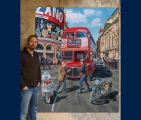 Trois groupes de Pop/rock assistent à la bagarre : à gauche les « Rolling Stones » regardent la bagarre d'un sourire amusé. Les « Beatles », dans l'autobus Imperial ont l'air franchement effrayés. A droite, les « Who » récupère de leur dernier concert, vautrés sur la barrière piétonne. A côté du taxi, John Cleese (« Fawlty towers ») regarde la scène, complètement ahuri. Piccadilly clash est avant tout un hommage aux « Swinging london des années 60. carte postale 15 x 10 cm tirée à 1000 exemplaires
